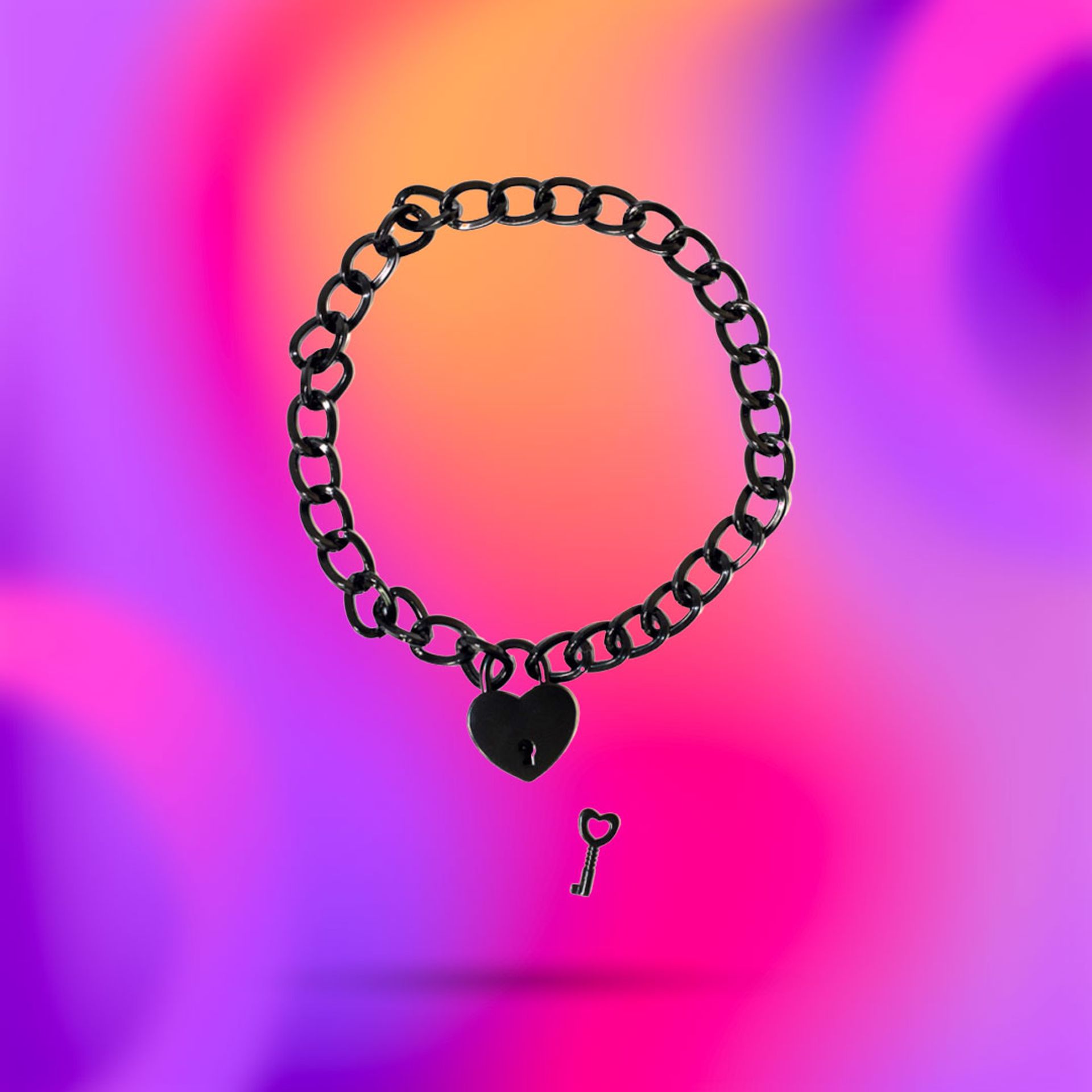 Сollar without a leash from Party Hard collection. It is made of metal and has a heartshaped lock with a key. The total length of the collar is 42 cm. Suitable for any size. Made in silver colour.